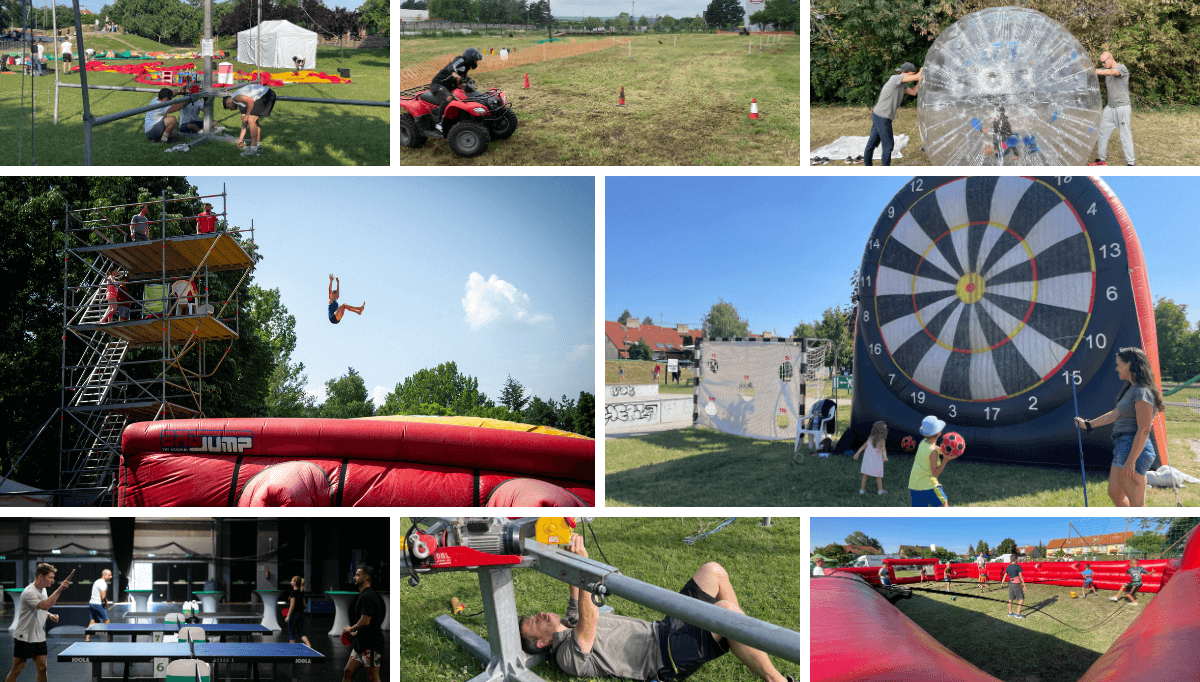 Ahogy azt eszközbérlés menüpontunkban is láthatod, az egészen egyszerű rendezvénykellékektől az óriás sport-és szórakoztató eszközökig megtalálsz mindent a palettán, így számos rendezvény típushoz tudunk megfelelő eszközparkot biztosítani, legyen az fesztivál, gyereknap, családi sportnap, csapatépítés, vagy komplex munkahelyi sportprogram.