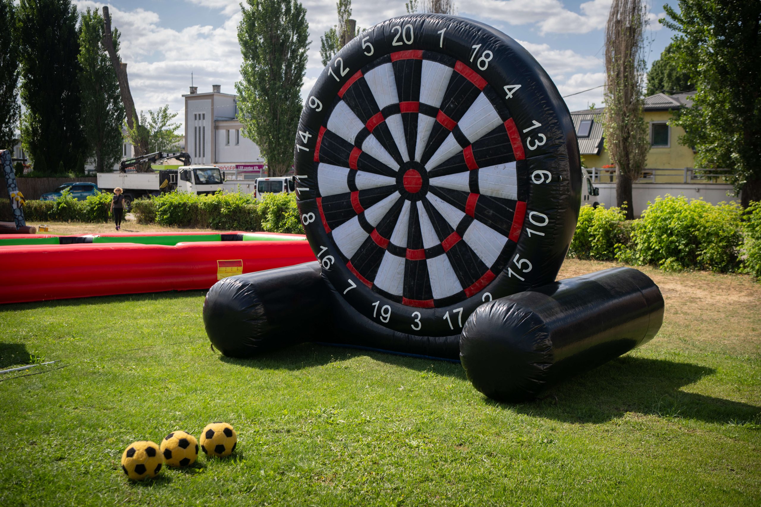 Ahogy a neve is mutatja, a Darts foci tökéletesen ötvözi a foci és a darts legjobb elemeit, mindezt egy óriási légváron. Egy speciális labdával kell eltalálni a darts szabályai szerint a táblát. Ha ez megvan, láss csodát, a labda ráragad a felületre! Kicsiknek és nagyoknak is az egyik legjobb móka, ami egy rendezvényen történhet velük!