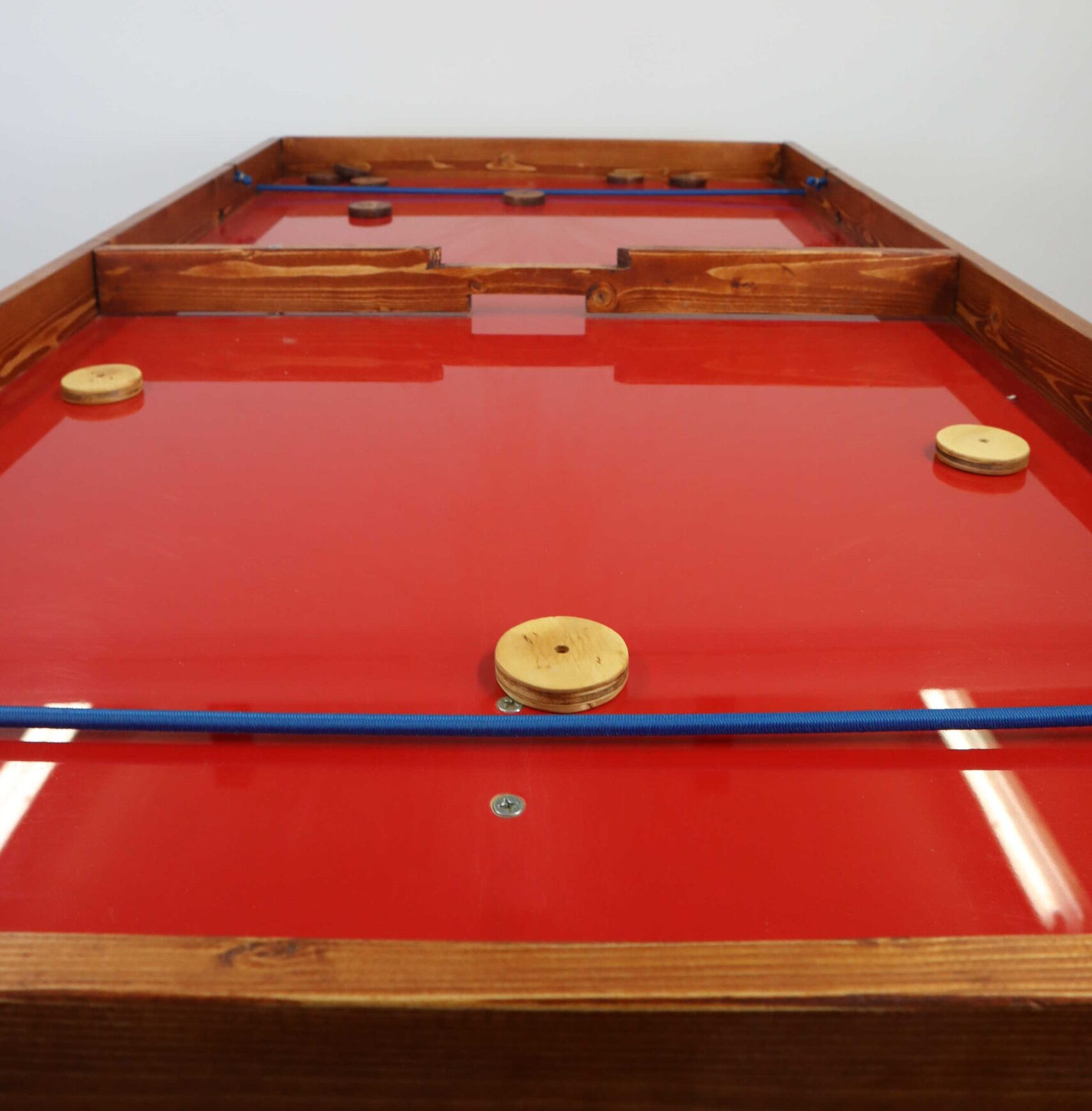 A Slingshot egy pörgős, interaktív ügyességi táblás játék, ahol a játékosok gumiszalag segítségével próbálják átlőni az ellenfél oldalára az összes korongot. Az a játékos nyer, aki mind a saját, mind az ellenfél korongját a másik oldalra löki. Kiváló választás céges csapatépítőkre, sport és családi napokra vagy épp irodai csapatépítésre, ahol a versengés és a mozgás garantált.